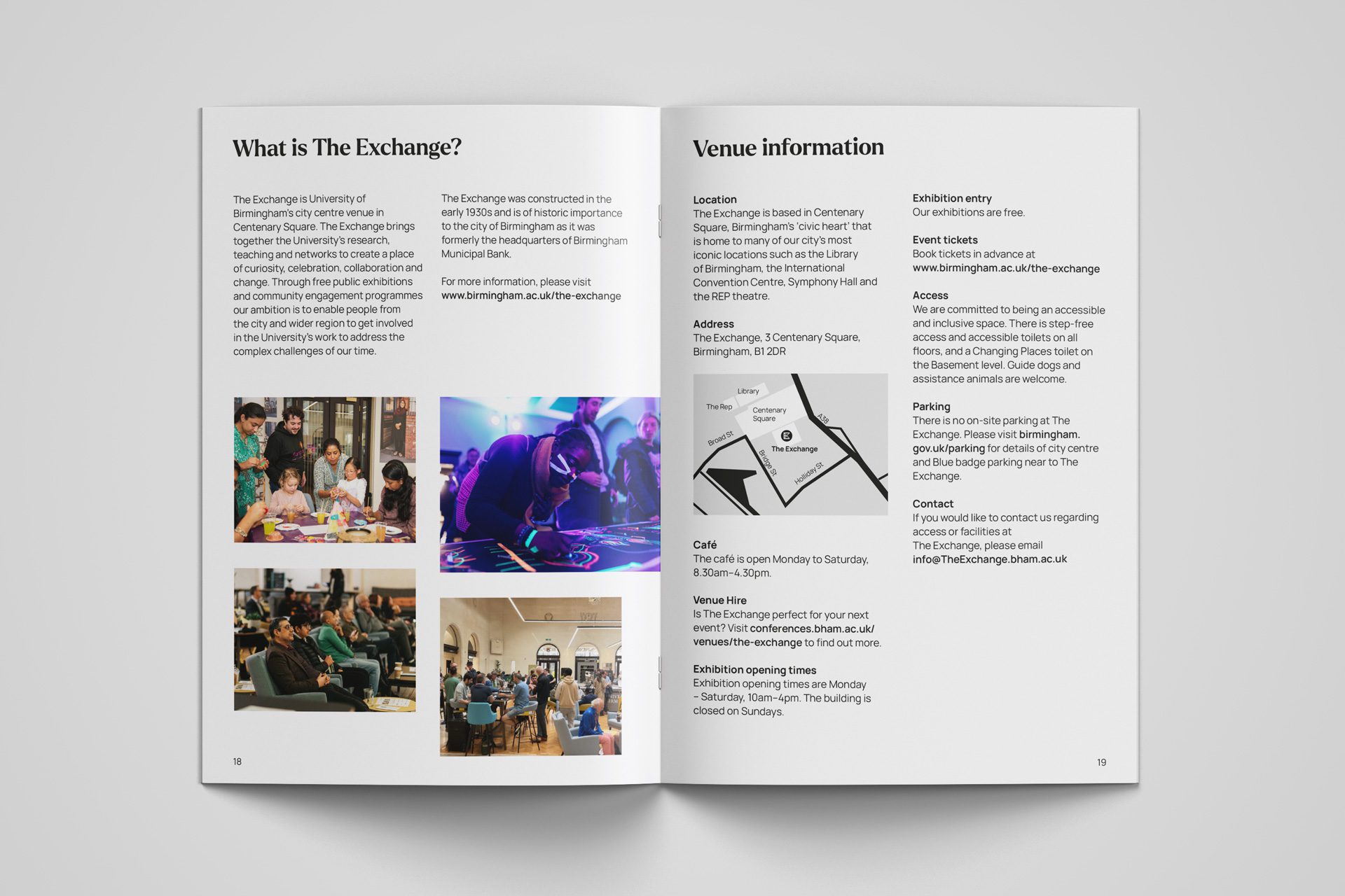 Marketing communications for event programmes at The Exchange, Centenary Square, Birmingham.